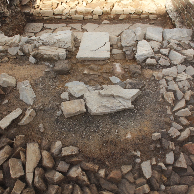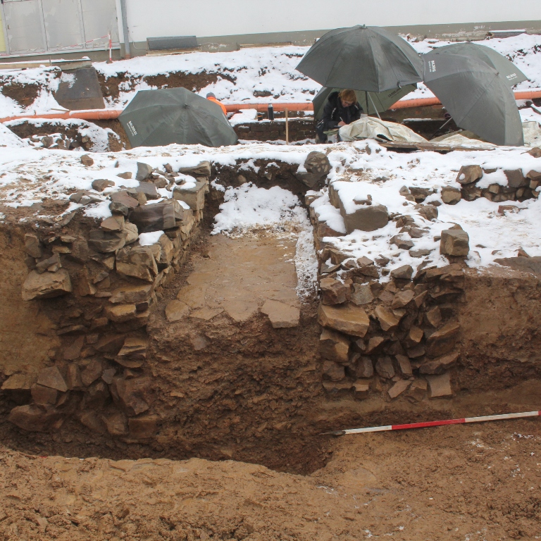 Der Keller der “Neuen Abtei” war mit Brand- und Bauschutt verfüllt, der während der Renovierungs- und Aufräumarbeiten des 19. Jhs. in den Keller gelangt sein dürfte. Eine Vielzahl von mittelalterlichen Architekturfragmenten fand sich nicht nur in der Kellerverfüllung,